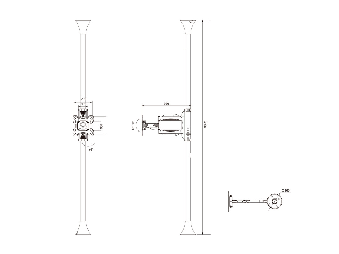 Ausleger von 566mm, Neigbar 8°, rotierbar 360°,