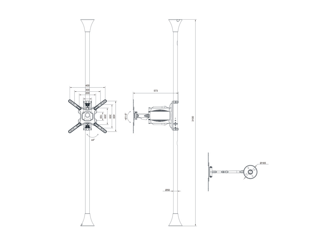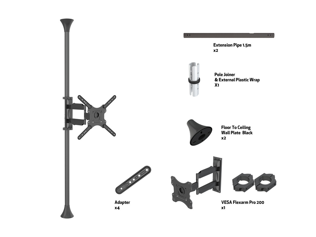 Boden-Deckenhalter 1x, 32"-55", VESA 100x100