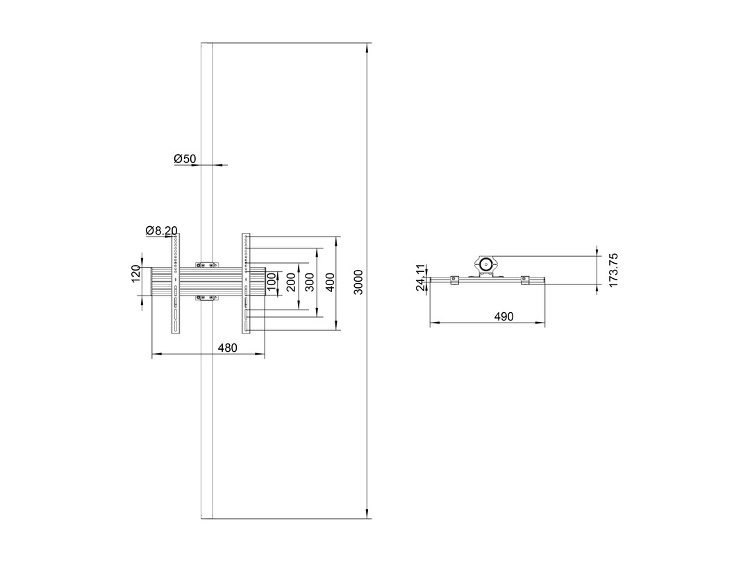 2x1500mm Rohre, neigbar 15°, drehbar 360°, Kabelmanagement, inkl. Zubehör, Optional Ver-