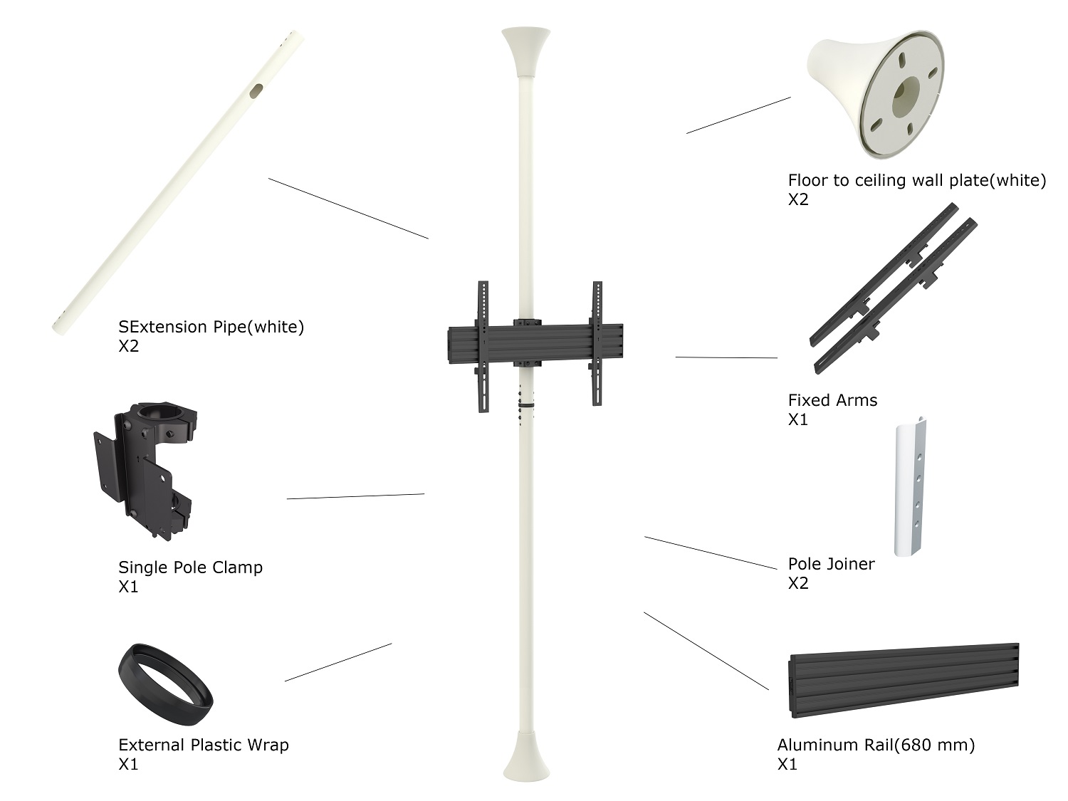 Boden-Deckenhalter 1x, 40"-65", VESA 100x100