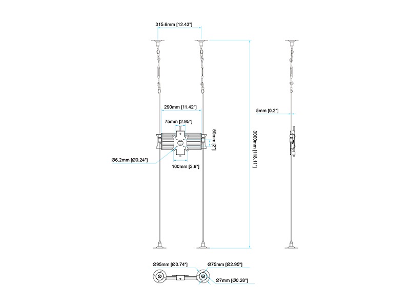 bis max 3000mm länge, Portrait oder Landscape, Metall/Aluminium/PVC, 51.5x15x15cm,