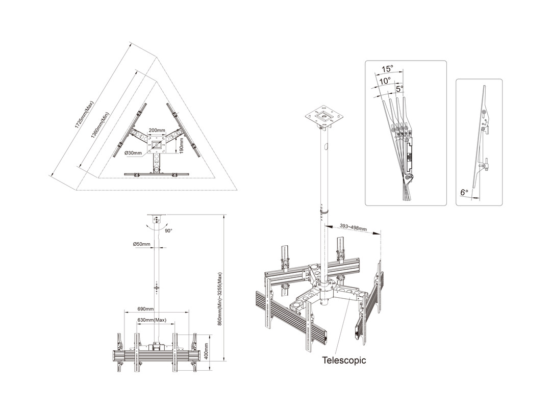 Deckenhalter 3x, 40" - 75", schwarz, VESA 100x