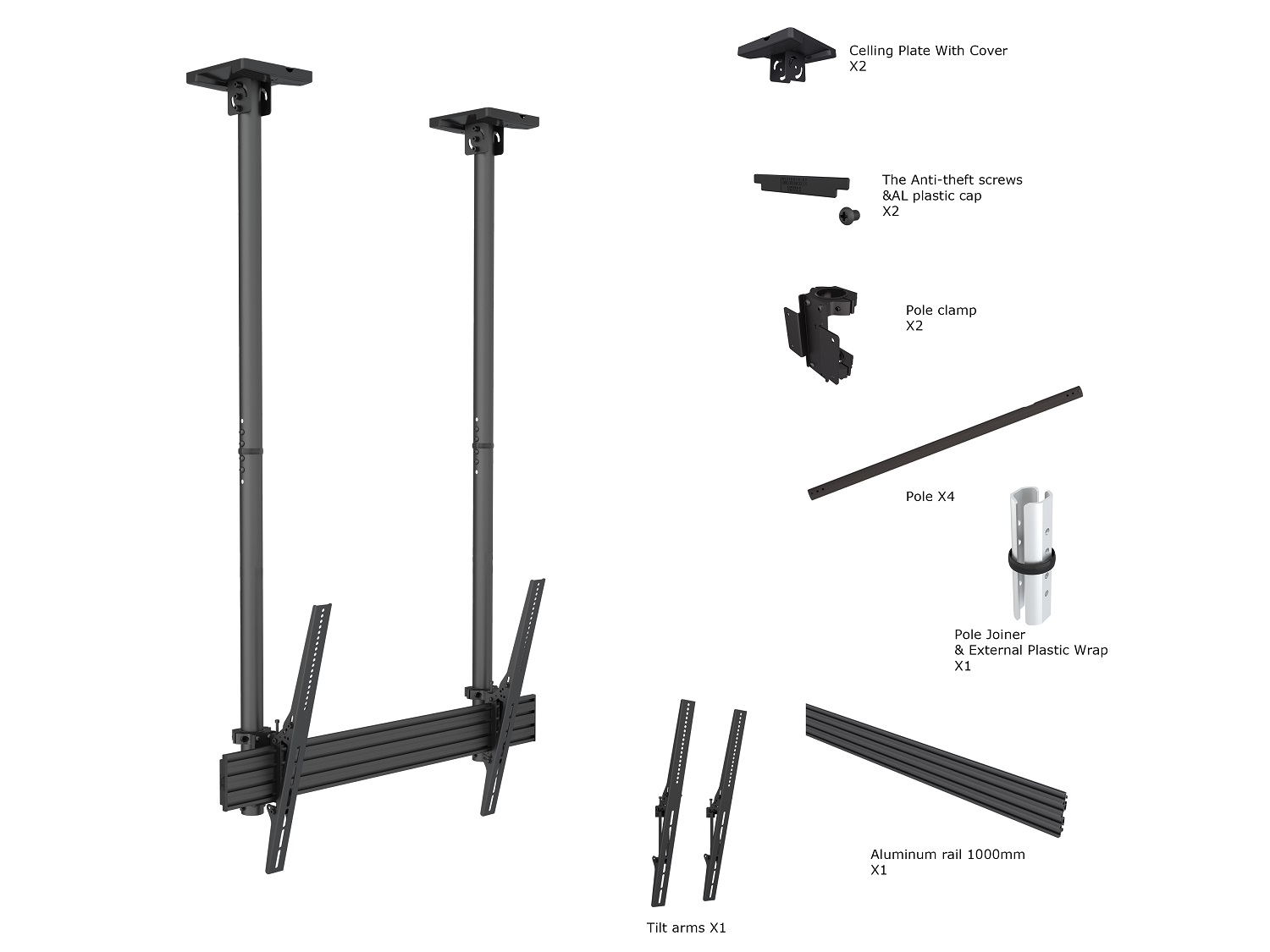 Deckenhalter, 40" - 100", schwarz, max 135 kg
