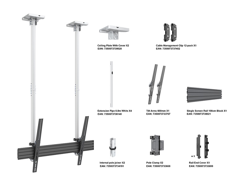 Deckenhalter, 40" - 100", weiss, max 135 kg