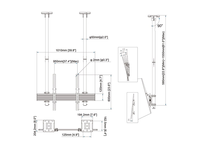 VESA100 -900x600, Stahl/Aluminium, neigbar15°