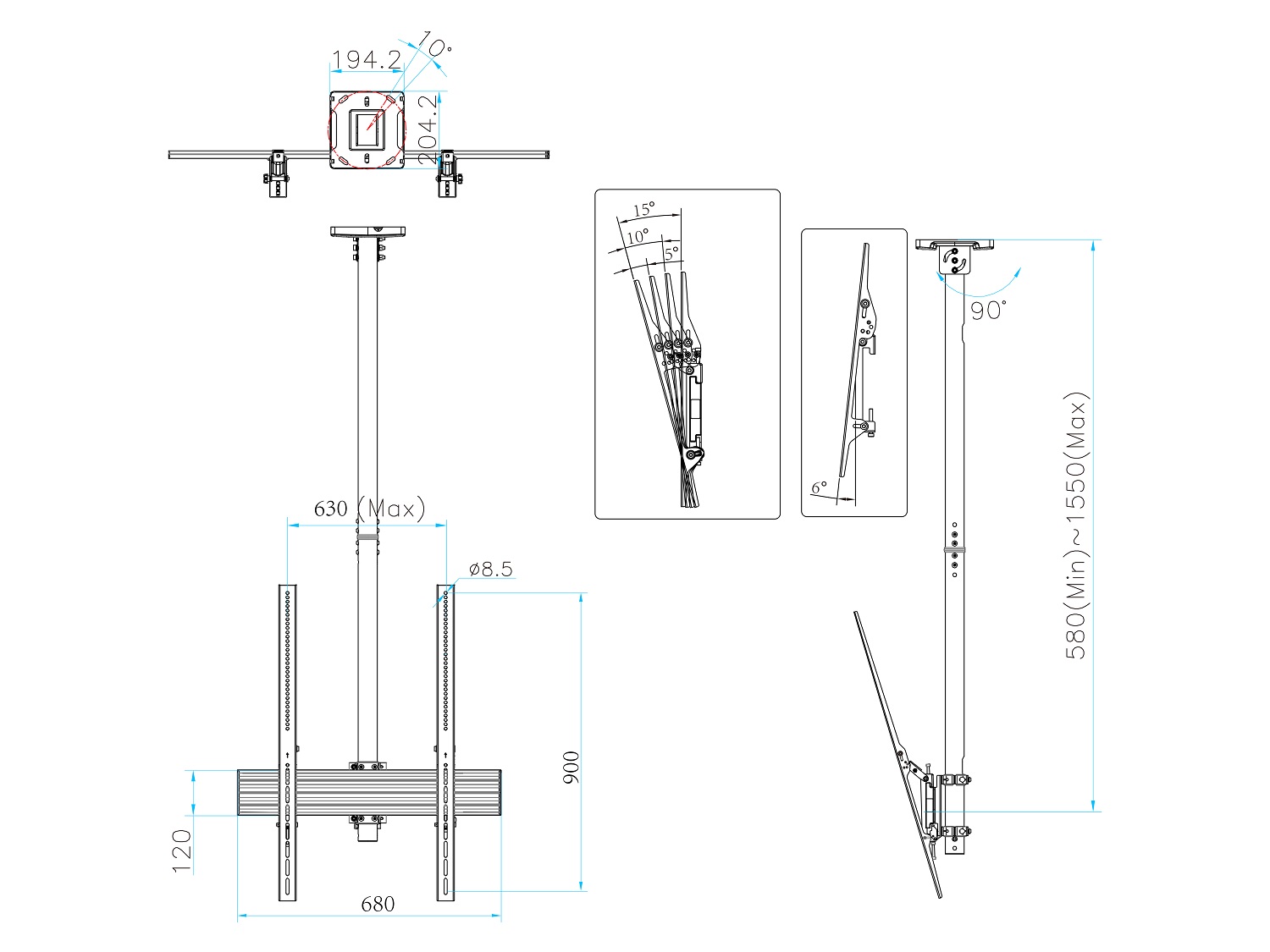 VESA 100-600x900, Stahl/Aluminium, neigbar 15°