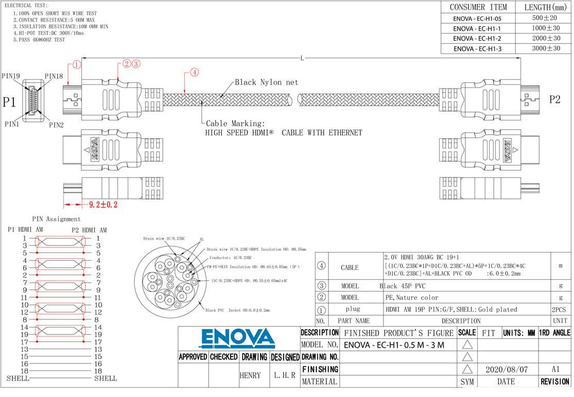 schwarz, 4K, 60Hz, vergoldete PE/PVC Stecker,