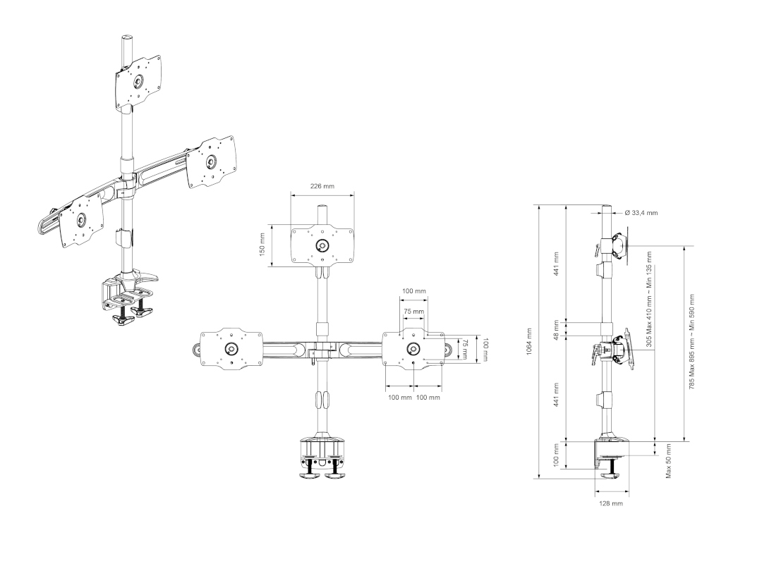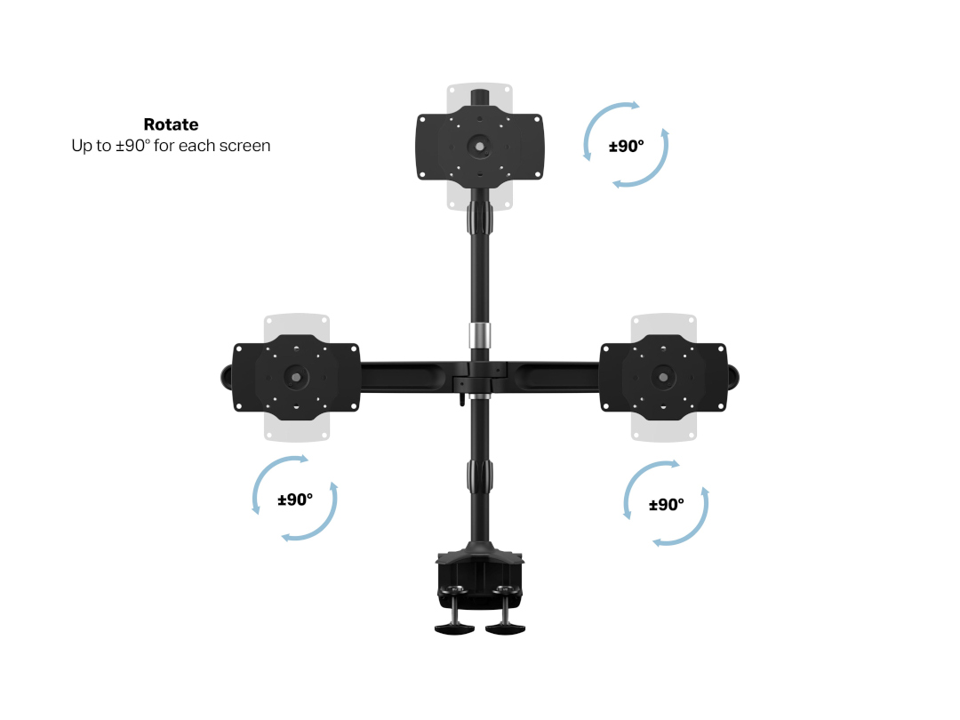 Halter Dreifach, bis 34", schwarz, Rotation 90°
