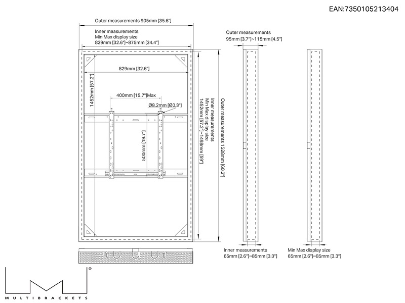 High Brightness Monitor Rahmen, 65", max 80kg