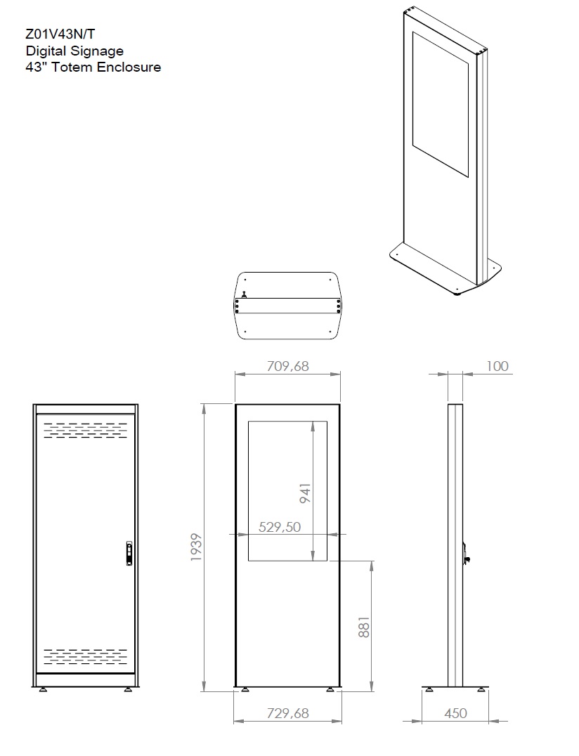 Indoor Stele Portrait, 43" Bildschirm, schwarz