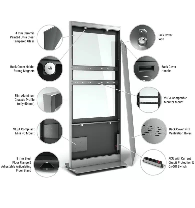 Indoor Stele Portrait, 55" Bildschirm, 4mm Glas,