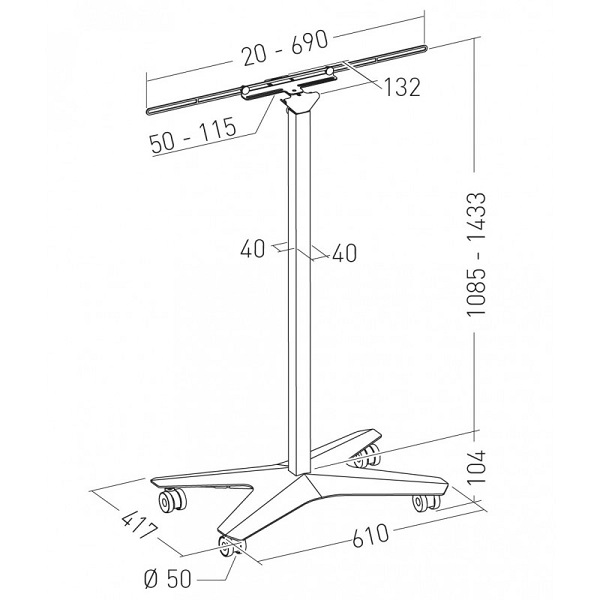 max 9 Kg., Höhenverstellbar, 1085-1433mm
