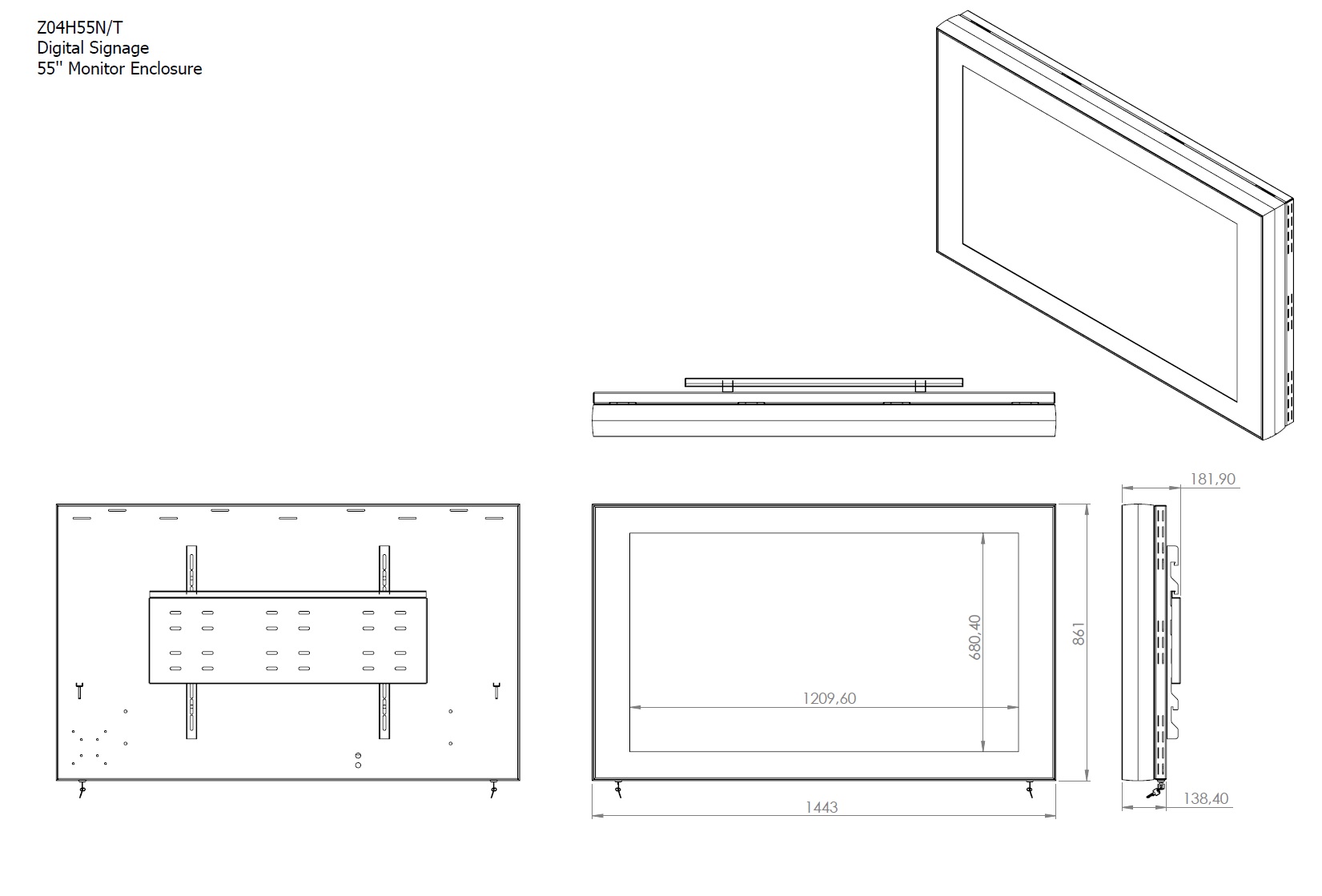 Monitorbox Landscape, 55" Bildschirm, schwarz