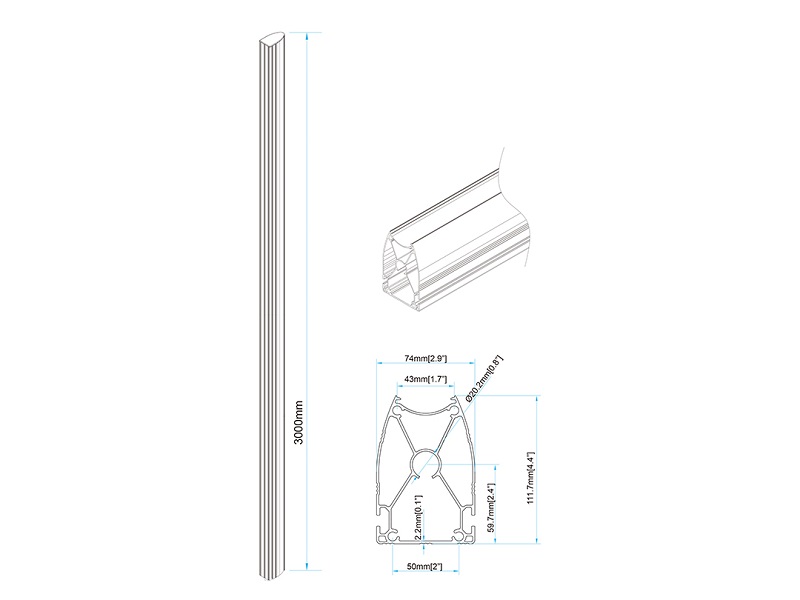 Aluminium-Plastik, schwarz, Höhe 300cm