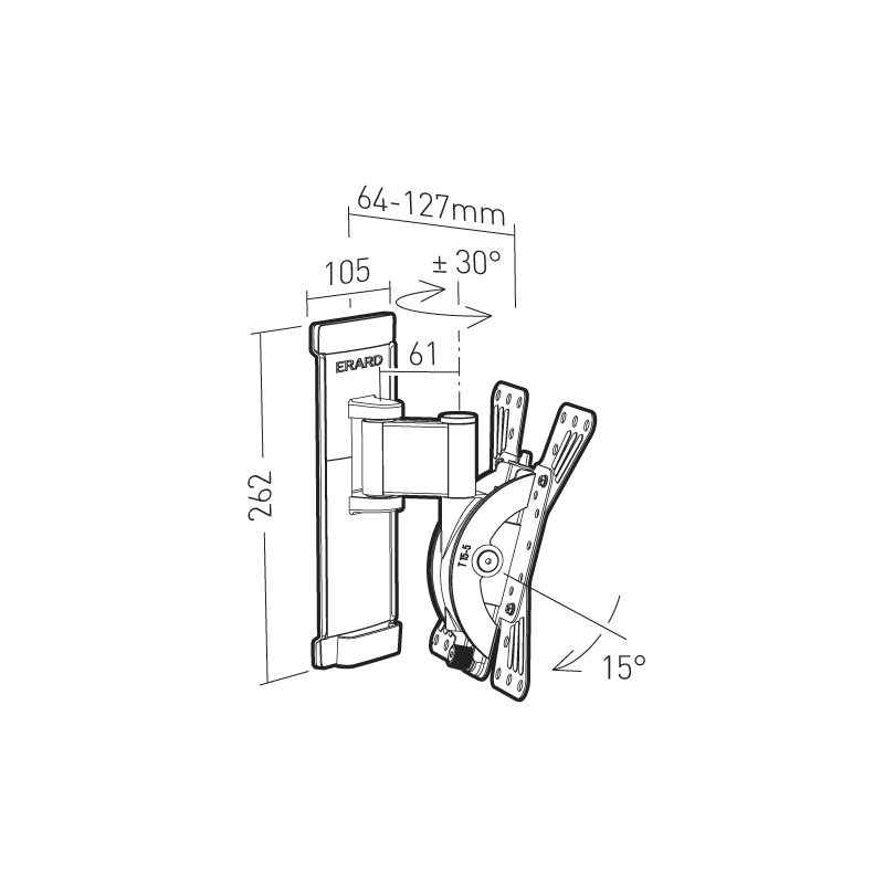 30° schwenkbar, 15° neigbar, Wandabstand