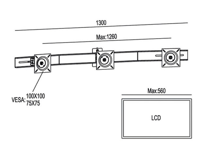 3 Fach Halter schwarz, 10" - 24", Tragkraft 30 kg
