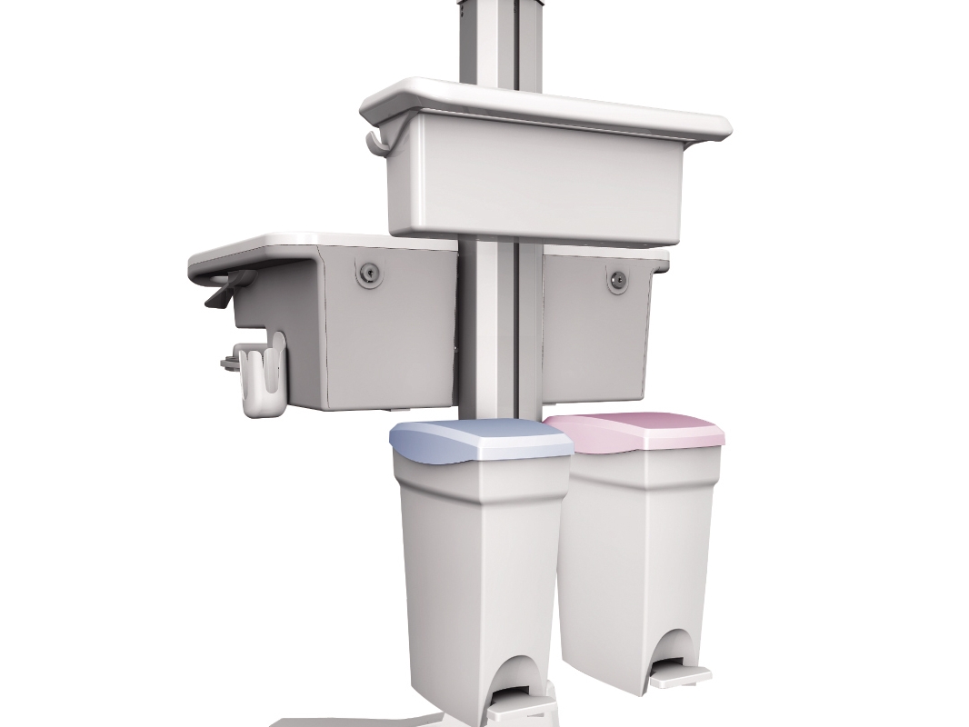 Abfalleimer zu Arbeitsstationen, grau, 4 Fächer