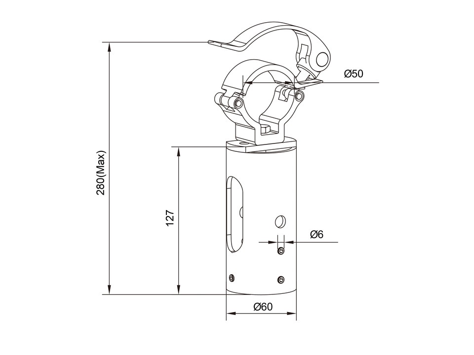 Metall,Durchmesser 50mm, 280x60x60, schwarz
