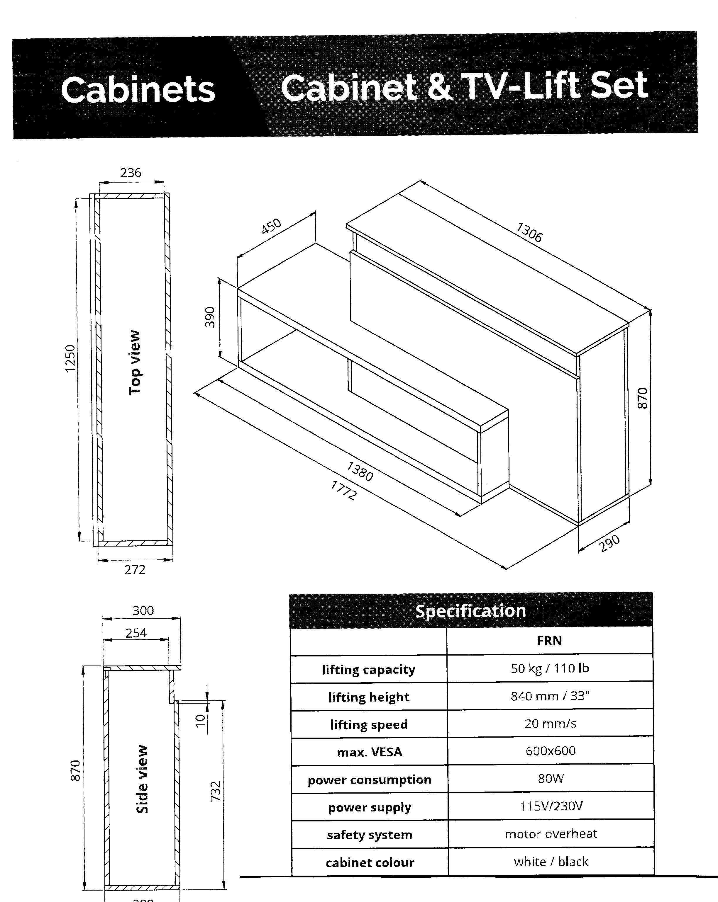 Eco 2 RF Liftsystem integriert ins Möbel, bis 55"