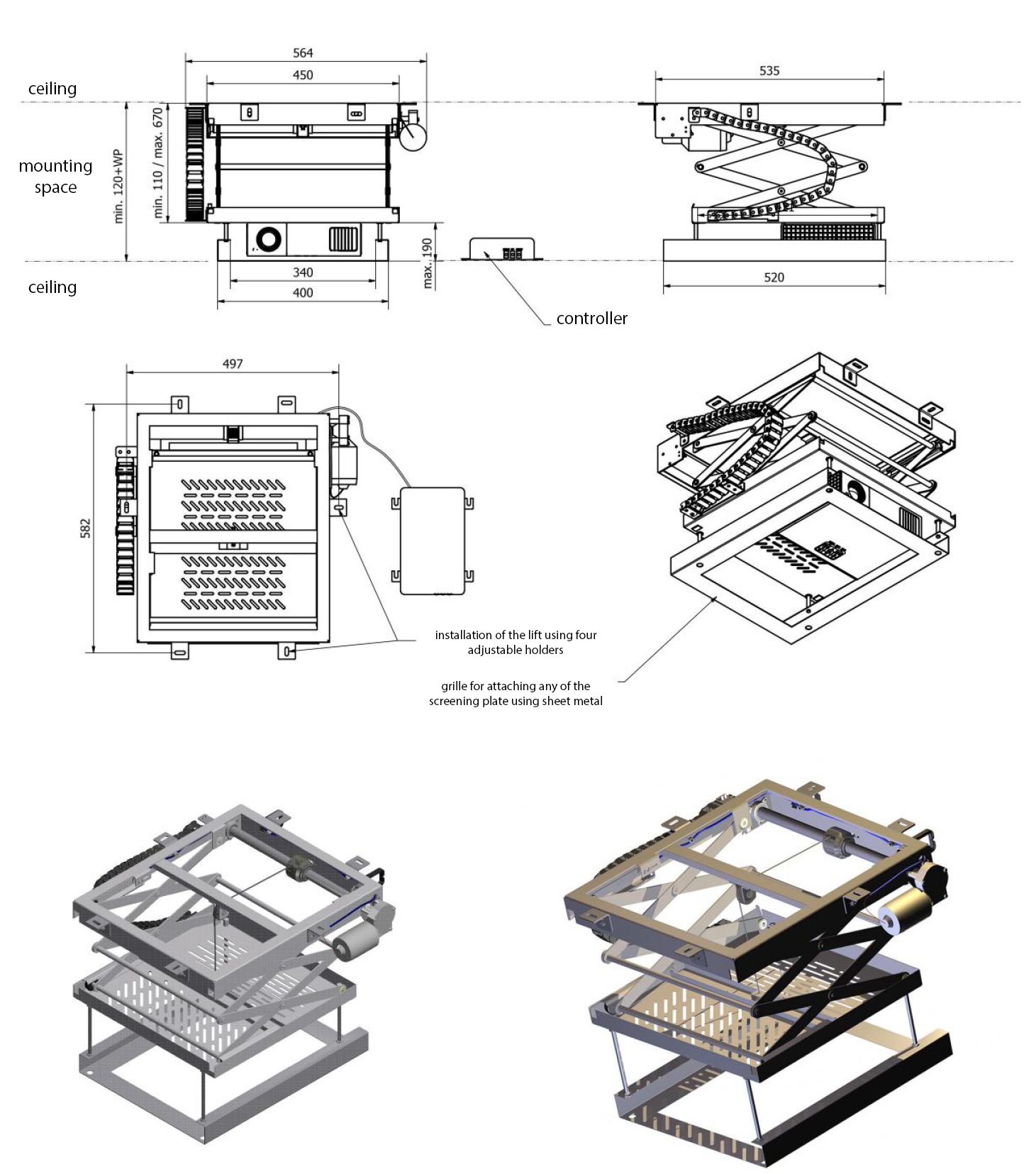 max. 30 kg, Hub 560 / 110-670 mm, RF Control