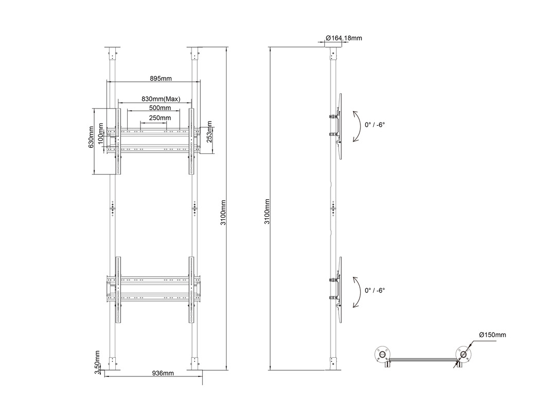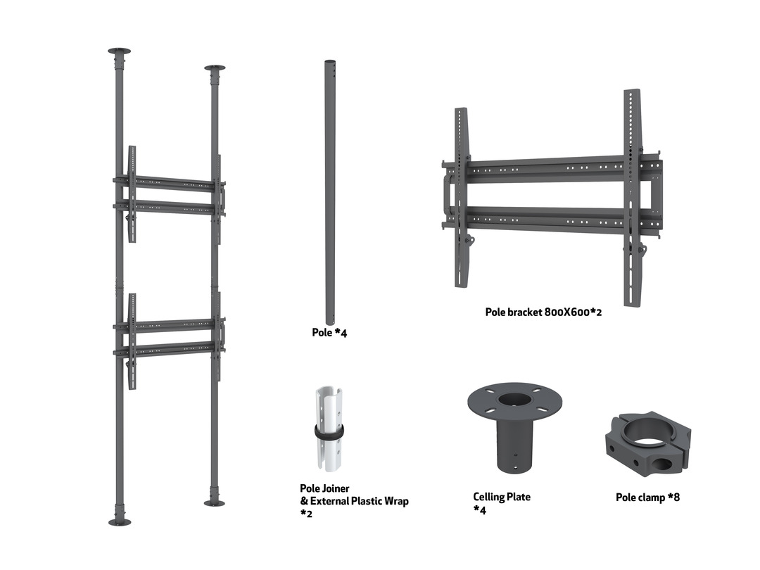 2 x 65" - 100", VESA 200-800x600, schwarz