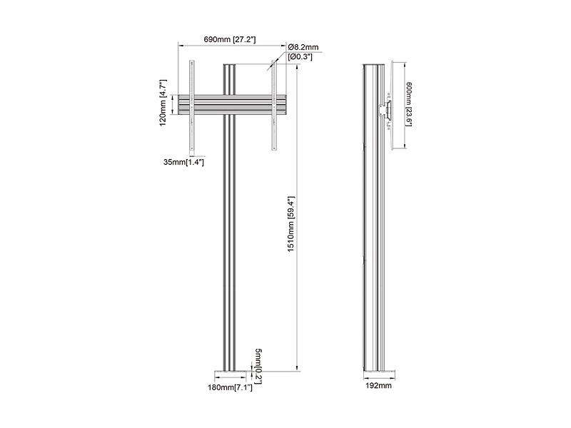150cm, integrierte Kabelführung, stufenlose Höhenverstellung, Tragkraft, inkl. Montage Set