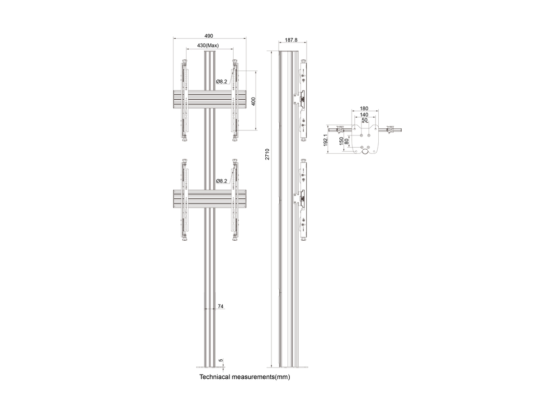 Höhe 2700mm, Microjustierung +/- 10mm, neig-