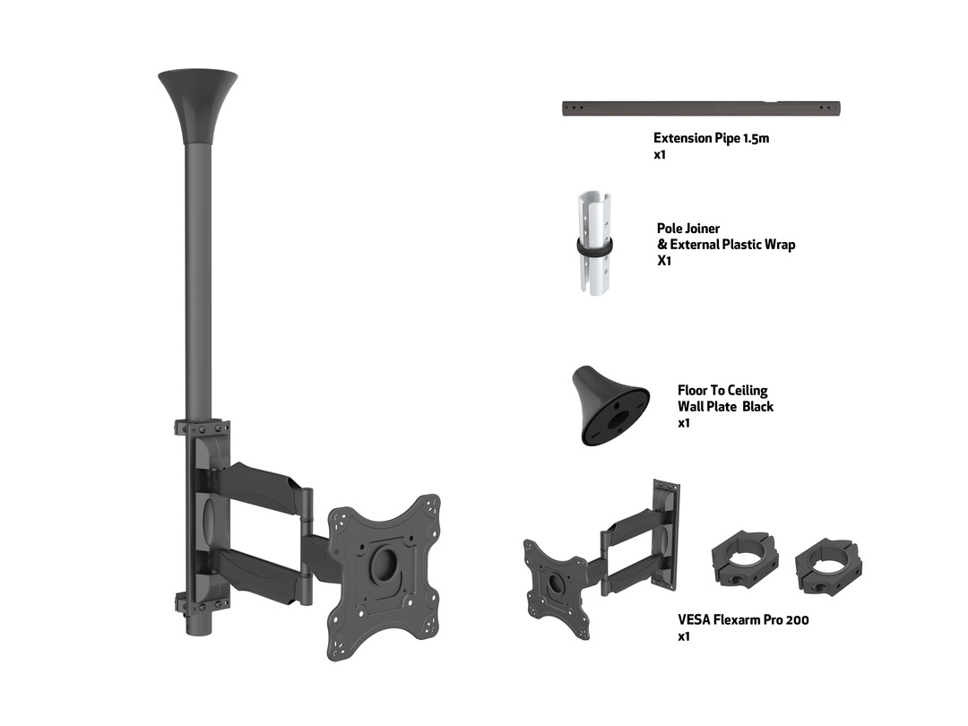 Deckenhalter 1x, 17"-42", schwarz, max 32 kg
