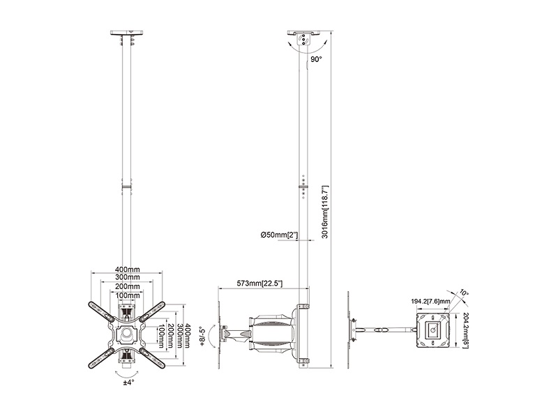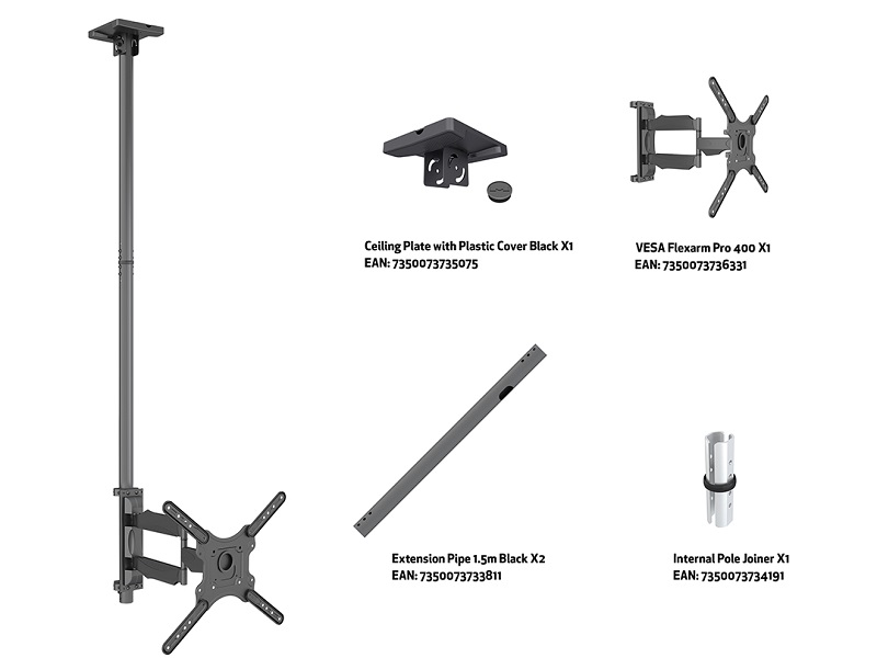 Deckenhalter 1x, 32"-55", VESA 100x100-400x