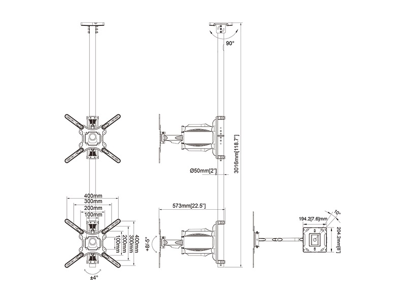 Deckenhalter 2x, 32"-55", VESA 100x100-400x