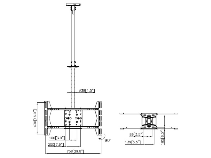 Deckenhalter Back to Back,bis 70",Stahl, schwarz