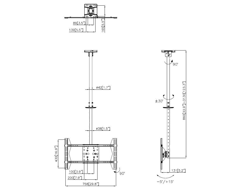Deckenhalter bis 63", Metall, schwarz, max 65 kg