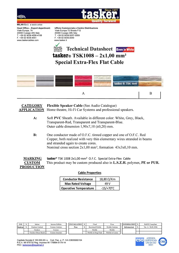aus ultradünnen Litzen von 0,1mm für eine bessere Signalübertragung, hergestellt in Italien