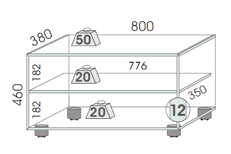 Glasmöbel Optiwhite, 50/20/20 kg Tragkraft