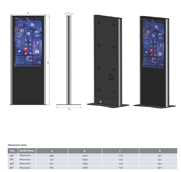 Indoor Monitor Box, Stele Portrait, 75", schwarz