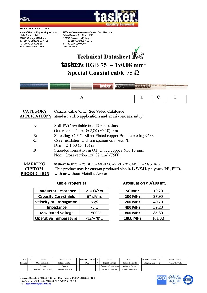 Für R.G.B Videosignale, mit Geflechtsschirmung