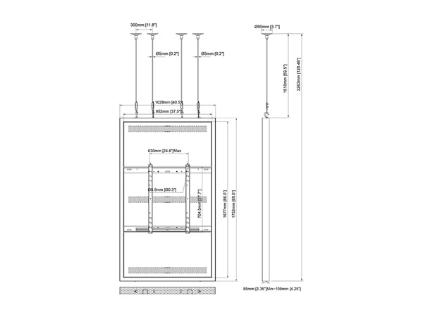 Monitor Rahmen, Deckenmontage, 75"/3731