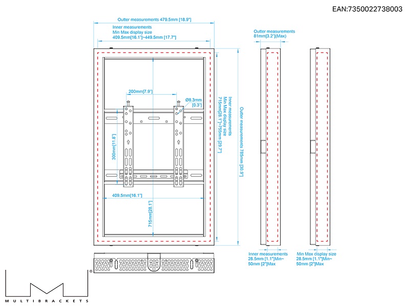 Monitor Rahmen Slim, Wandmontage, 32"/8003