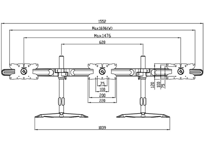 VESA 75x75 - 200x100, max. 8 kg/Monitor