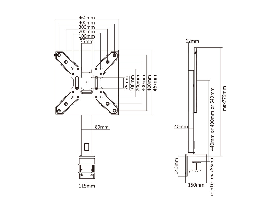 Monitorhalter 37 bis 55", weiss, Tragkraft 35 kg