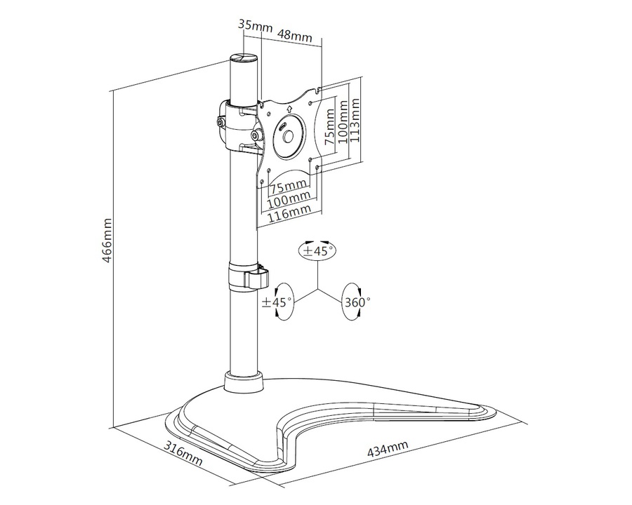 minium, Vesa 75x75 - 100x100mm, Höhe 100-