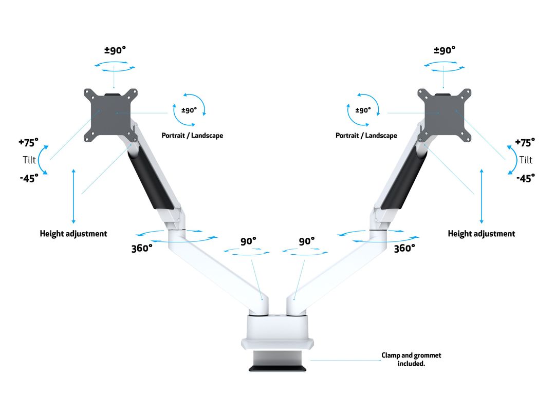 Monitorhalter Duo 32", Alum., weiss, rotierbar 90°