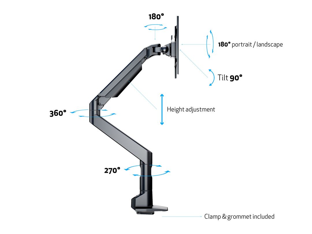 Monitorhalter mit Gasfeder bis 49", schwarz