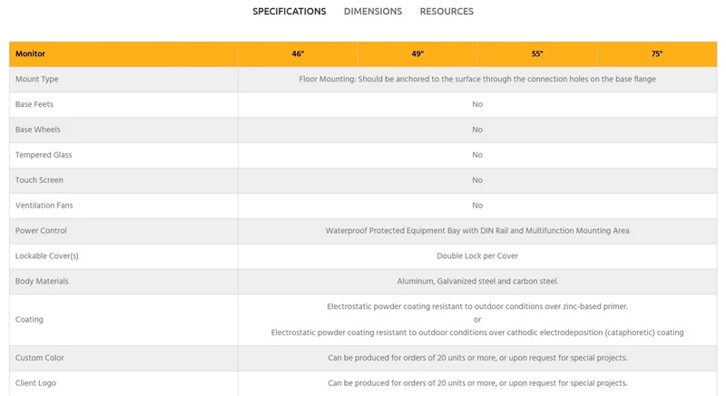 Outdoor Stele Portrait, 55" Bildschirm, ohne