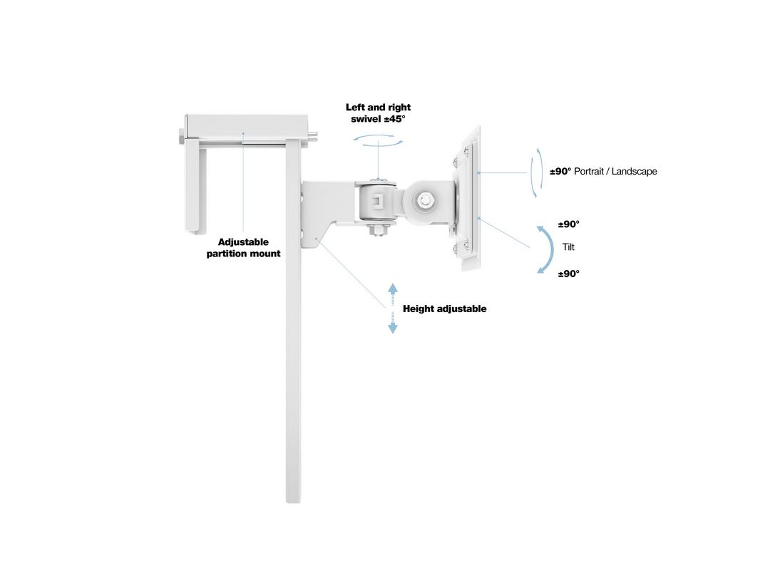 VESA 75x75-100x100, neigbar 90°, schwenkbar