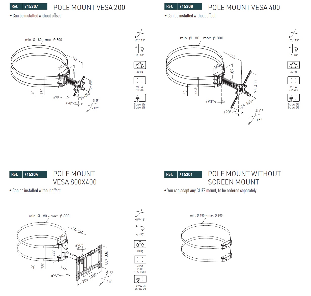 60° schwenkbar, 15° neigbar, für Säulen bis 800