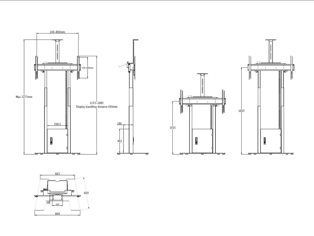 1210 -1860mm, Kabel Bedienung, lautloser Motor,