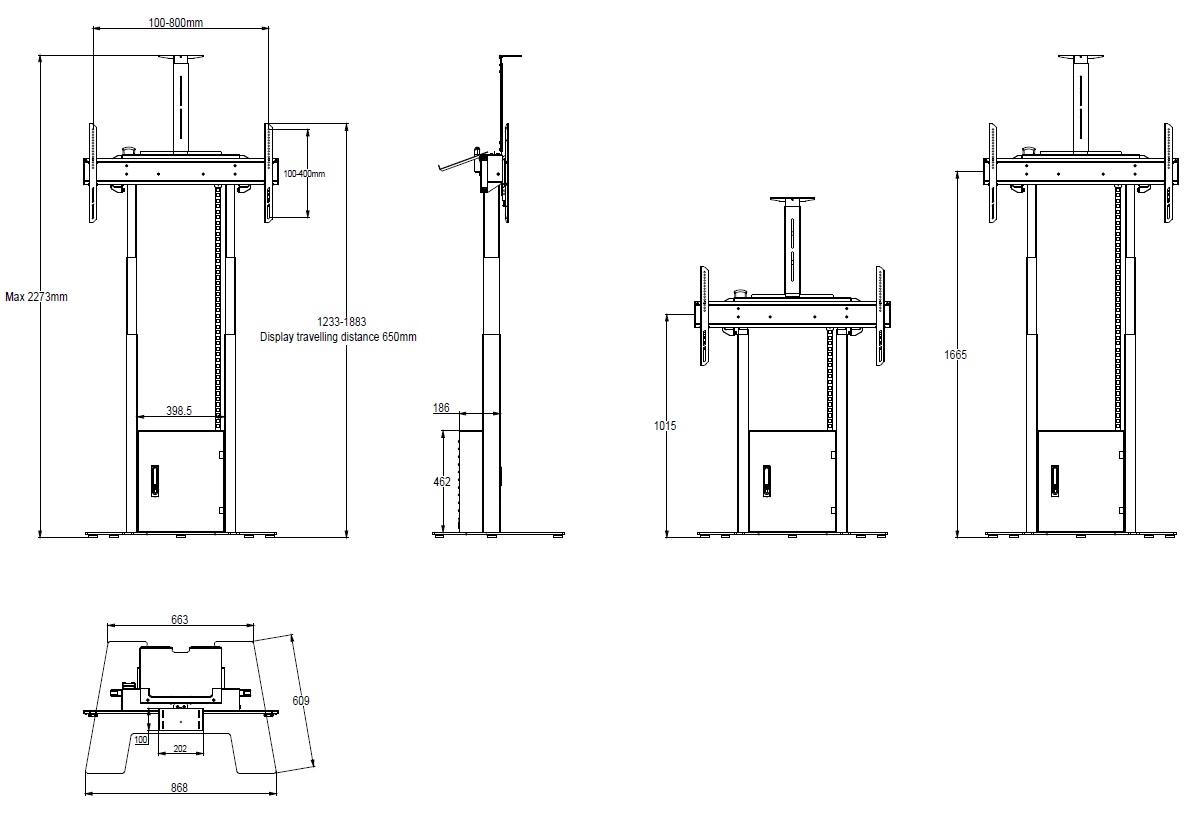Standfuss elektr, 43-86", max 50 kg, schwarz