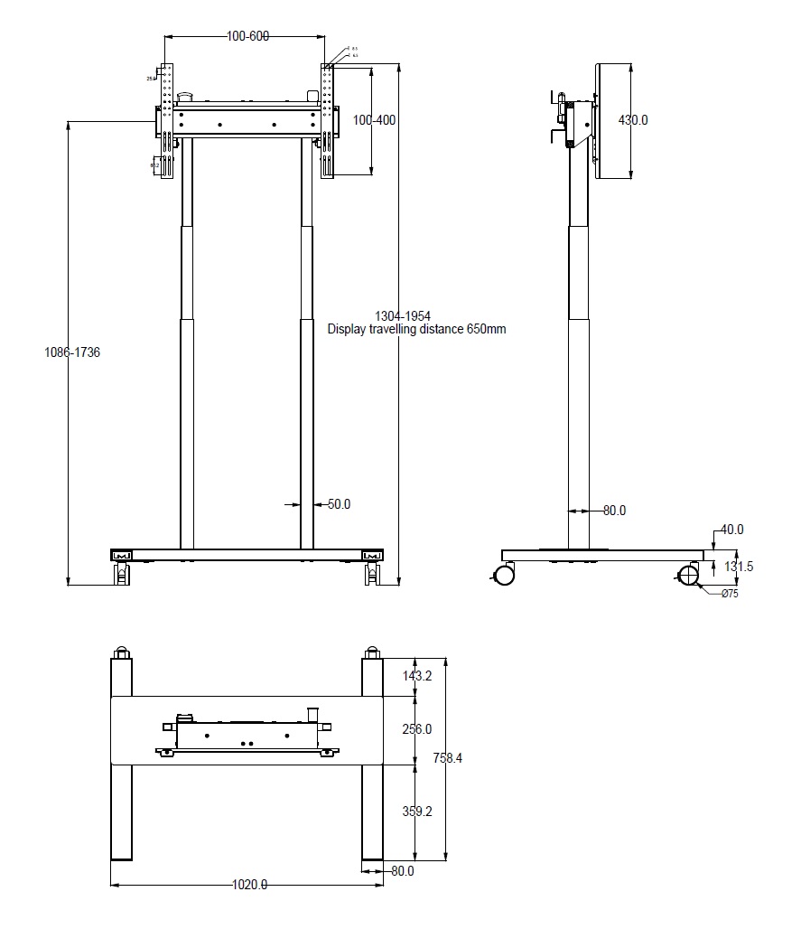 Tente Rollen mit Stoppern, geräuscharmer Motor,