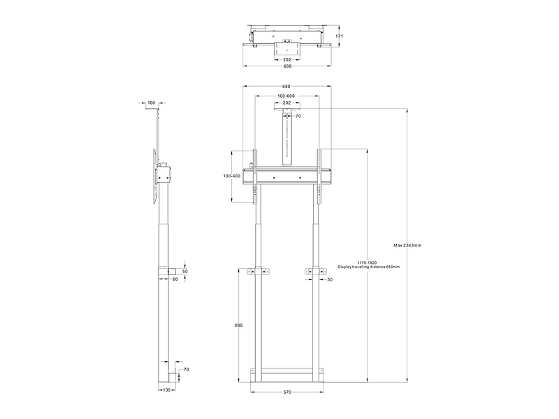 VESA 600x400,Höhe 1820mm, Aluminium-Metall